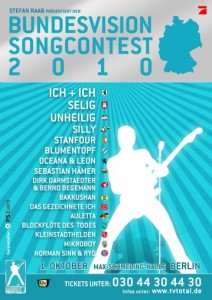 Stefan Raabs Grand Prix der Bundesländer kommt erneut aus der Hauptstadt: Nach dem mehr als deutlichen Sieg von Peter Fox mit dem Lied „Schwarz zu Blau“ für Berlin beim «Bundesvision Song Contest» im vergangenen Jahr überträgt ProSieben den nationalen Musik-Wettstreit aus der Berliner Max-Schmeling-Halle am 1. Oktober 2010 ab 20.15 Uhr live. Etablierte Bands, Newcomer und auch einige Geheimtipps erwarten die Zuschauer beim