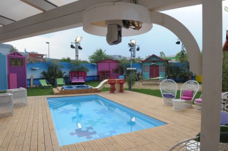Dort wird sich viel ereignen: Der Garten ist in der Sommerstaffel besonders wichtig. Auffallend: Endemol hat viele kleine Sitzgruppen geschaffen - ob rechts bei der Stuhlgruppe, in der Mitte an der kleinen Bar oder weiter hinten auf den Liegen.
