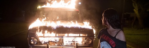 Vor allem die Szenen, in denen die Bösen nicht einfach nur hinter der Familie herrennen, um ihnen möglichst effektvoll das Messer in den Bauch zu rammen, wirken umso beklemmender: Dollface, Pin-Up-Girl und Maskenmann strahlen bis zum Schluss eine Überlegenheit aus, die viel bedrohlicher ist, als ein Mörder, der aufgrund seiner körperlichen Beschaffenheit ohnehin schneller und stärker ist, als die Person, auf die er es abgesehen hat. Wenn Dollface im letzten Drittel sogar demaskiert wird, treibt Johannes Roberts sein Spiel mit der Standardzeichnung eines Schlitzerkillers auf die Spitze, denn der Gegenspieler ist eben kein unkaputtbarer Zwei-Meter-Hüne, sondern eine zierliche junge Frau, in deren Augen sich der ganze Wahnsinn widerspiegelt.