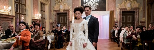 Lang bedient sich nämlich weitestgehend am kleinen Einmaleins dieses Stilmittels: Neben Brecht wenden sich gelegentlich auch weitere Figuren und Filmversionen realer Personen ans Publikum, hier und da weicht der prunkvolle Realismus der Ausstattung einer betont-gekünstelten Bühnenhaftigkeit (Joe Wrights «Anna Karenina» lässt grüßen) oder wird gar durch (gern von Brecht angekündigte) impressionistische Elemente gebrochen. Da scheinen bei einem romantischen Spaziergang während Brechts Wunsch-«Dreigroschenfilm» auch mal zwei Monde, unter denen die Liebenden entlang spazieren, während ein zufrieden-schelmischer Brecht dem baffen Produzenten seine Intention erklärt. An anderer Stelle wird die erdgetönte Farbästhetik, in die Kameramann David Slama ein Gros des Geschehens taucht, bewusst verletzt. Teils um die Stimmung einer Szene zu stärken, teils augenscheinlich ohne tieferen Grund – ein Vorgehen, dass Slama bereits von Adolf Winkelmanns «Junges Licht» gewohnt sein dürfte.