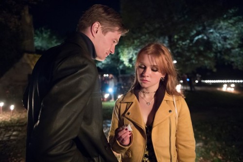 Decleregc (Jeroen Engelsman) steht nahe bei Jette (Franziska Brandmeier), die ein kleines Plastiktütchen mit weißem Inhalt in der Hand hält. Es ist Nacht, im Hintergrund sind Bäume und einzelne Lichter zu sehen.