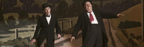 Fast wie ein Fremdkörper wirken neben den Szenen möglichst kleiner Gesten und Bemerkungen die kurzen Einblicke in Laurels und Hardys Bühnenprogramm und Filmdreharbeiten. Für wenige Szenen sehen wir Dick und Doof, Stan und Ollie oder wie auch immer sie genannt wurden in Aktion; und da sich die beiden Hauptdarsteller Steve Coogan («The Dinner») und John C. Reilly («The Sisters Brothers») die Manierismen und Artikulation der großen Vorbilder perfekt angeeignet haben, muss man schon zweimal hinschauen, ob die Macher hier nicht einfach auf Archivmaterial des echten Komiker-Duos zurückgegriffen haben. Die beiden Hollywood-Großkaliber erweisen sich in ihren Hauptrollen als optimale Wahl – John C. Reilly wurde für seine Performance sogar für den Golden Globe als Bester Hauptdarsteller in einer Komödie nominiert. Wenngleich diese Wahl definitiv verdient ist, wundert sie doch zugleich aus zwei Gründen: Zum einen erschließt sich einem nicht ganz, weshalb Steve Coogan wiederum nicht berücksichtigt wurde (während sie beide in ihren Einzelszenen gleichermaßen stark sind, blühen sie doch gerade im Zusammenspiel erst so richtig auf).