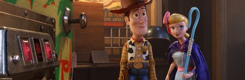 So begegnet Cowboypuppe Woody im Laufe des Films seiner alten Flamme wieder, der Lampenverzierung Porzellinchen. Die Gespräche zwischen ihnen sind flott geschrieben, voller kleiner verbaler Spitzen und mit einem schwer zu widerstehendem Charme – die Dialoge vermitteln glaubwürdig das Gefühl, dass zwei alte Bekannte nach langer Trennung vom Ton her prompt da wieder ansetzen, wo sie einst aufgehört haben, jedoch mit Witz und Neugier abklopfen, was sich in der Zwischenzeit getan hat. Mangels eigener Erfahrungen dürfte das Kinderpublikum dies so nehmen wie es ist. Für Ältere weckt der raffiniert geschriebene Rapport zwischen Woody und Porzellinchen diverse Assoziationen. Die wohl deutlichste: Sie klingen wie ein Ex-Pärchen. Und während Woody sich seit der Trennung durch weitere Familienkonstellationen geschlagen hat (er sah Andy erwachsen werden und ist nun für Bonnie da, die ihm aber rasch entgleitet), fing Porzellinchen ein lockeres Singleleben an, ohne feste Bindungen.