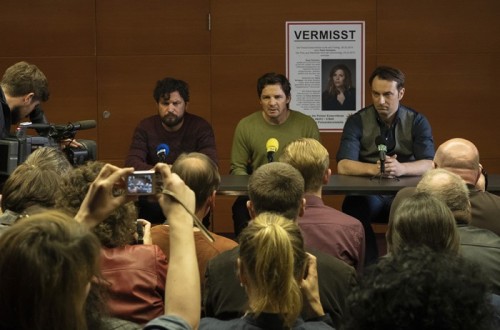 Nach dem Verschwinden von Dana gehen Alex Schwarz (Felix Klare, Mitte), sein Bruder Daniel (Sascha Alexander Geršak) und Chefermittler Jan Mehnert (Steven Scharf, re.) an die Öffentlichkeit.