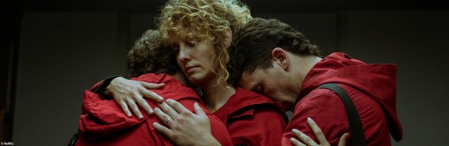 «Haus des Geldes», auch bekannt als «Money Heist» oder «La casa de papel», spielt in letztgenannter Dimension mit. Die von Álex Pina erdachte Serie kam ab dem 3. April 2020, dem Starttag der acht neuen Episoden, allein in Deutschland innerhalb einer Woche auf umwerfende 20,5 Millionen Abrufe brutto bei Netflix. Das besagen die Daten des Marktforschungsunternehmens Goldmedia, das sich auf die Untersuchung des Streamingmarktes spezialisiert hat. Somit stellt die Ganovenposse selbst