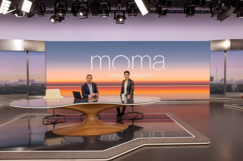 «ZDF-Morgenmagazin» neu. Das neue Set, das wieder in Berlin steht, wird erstmals am 7. September on air zu sehen sein. Eine „Moderationsinsel“ wird Ankerpunkt des Sets. Dabei handelt es sich um einen Arbeitstisch, an dem die Moderatoren die Zuschauer begrüßen, die Nachrichten präsentieren, Interviews führen, mit ihren Laptops aktuelle Informationen erhalten und diese weiterverarbeiten. Alle Übergaben zu weiteren Präsentatoren, etwa der Bereiche Wetter oder Sport, erfolgen von diesem Tisch aus, sodass die Crew des «Morgenmagazins» auch vor der Kamera für die Zuschauer stärker als Team in Erscheinung tritt, das sich untereinander austauscht und ergänzt. So sollen auch die Arbeitsabläufe sichtbar und transparenter für das Publikum gemacht werden.