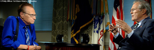 Larry King war zwischen 1985 und 2010 für 25 Jahre lang jeden Abend bei CNN zu sehen und über die Jahre fand nahezu jeder Gast einmal bei ihm Platz, egal, ob Filmstar, Sängerin, Präsident oder Sportler. Er war dabei in seiner Arbeit und vor allem in seiner Art Interviews durchzuführen und Fragen zu stellen keineswegs unumstritten. Oft sagten ihm Kollegen nach, er sei emotionslos, seine Fragen nicht hart genug, unvorbereitet. Doch genau das wollte Larry King sein, unvorbereitet, auf dem Stand der Zuschauer sein, er wollte ein Gespräch präsentieren, dass sich so zwischen seinem Gast und einer X-beliebigen Person abgespielt hätte.