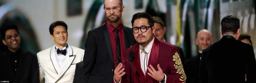 «The Whale» als „Bester Hauptdarsteller“ ausgezeichnet. Er bedankte sich sichtlich emotional auf der Bühne. Auch Daniel Kwan und Daniel Scheinert persönlich wurden für ihre Regiearbeit mit einem Academy Award versehen. Zudem erhielten die beiden den Preis für das „Beste Originaldrehbuch“