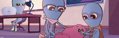 Die Dinge werden auf dem seltsamen Planeten, der der Erde gleicht, umschrieben. Konfetti ist dort „kleiner Müll“, Kaffee wird als „das wird mir schaden“ umschrieben. Eine Katze ist ein „Ding, das vibriert“. Der kleine Kater spielt noch eine größere Rolle, schon in den Comic-Strips war er der ideale Weggefährte im Innenraum, weil es kratzen und sich verstecken kann. Doch den großen Auftritt hat der faule Menschenfreund erst in der zweiten Folge.