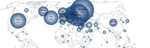 Abb. 1 Anzahl der Berichte, in denen die jeweiligen Länder im Jahr 2022 in der deutschen «Tagesschau» erwähnt wurden