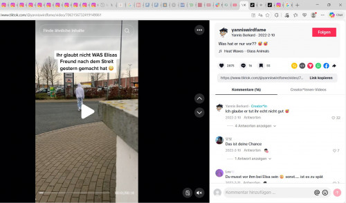 Doch der fragliche Protagonist bedient neben der Produkteinbindung noch ein weiteres wichtiges Element eines professionellen Influencers. Schon zu Beginn seiner TikTok-Aktivität 2022 positioniert er ein Love-Interest (Elisa), um die sich eine Liebesgeschichte spinnt, die sich in kurzen Videos entwickelt – Storytelling nennt sich das, was der Marketing-Profi predigt. Er, der scheinbar arme Plattenbau-Schlucker mit spärlich eingerichteter Wohnung, entwickelt einen Crush auf seine attraktive Nachbarin auf der Etage unter ihm.