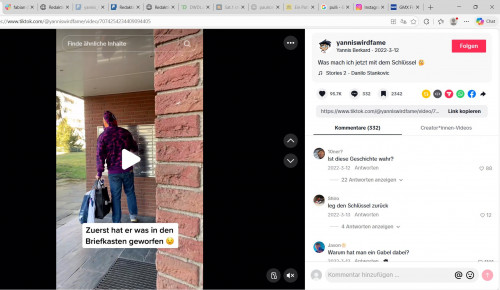 Zudem deuten die Followerzahlen von Yannis B. darauf hin, dass seine Art mit Glaubwürdigkeits-Zweifeln umzugehen, durchaus verfangen hat. In einem Video von 2022 gibt er beispielsweise ungeniert zu Wort, dass natürlich alles nur Fake sei, schließlich wäre es schon ungeheuerlich, in jemandes Wohnung einzudringen. Kurz darauf scheint er just in dem Moment ertappt zu werden und duckt sich weg - eine selbstironische Ebene, die eine Identifikation mit ihm als sympathisch verpeilten Content-Creator potenziell offen lässt. Wenn sie denn wollen, können die User einfach ihr Framing anpassen und dem Szenario als trashige Comedy-Happen treu bleiben.