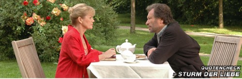Doch das minimale Tief war nur von kurzer Dauer. Schon in der letzten Juli-Woche stieg die durchschnittliche Reichweite auf mehr als drei Millionen Zuschauer. Mit 26,7 Prozent Marktanteil lag die Telenovela wieder im Bereich der sonst üblichen Werte. In den kommenden Wochen änderte sich nicht viel: Laura und Alexander lockten mit ihrer Liebesgeschichte nach wie vor viele Menschen vor den Fernseher – im Normelfall sah mehr als jeder Vierte zu. In der ersten Septemberwoche gelang dann Außergewöhnliches: Auch in der Zielgruppe war man wohl am Ziel angekommen: Durchschnittlich etwas mehr als 15 Prozent der 14- bis 49-Jährigen, die die ARD sonst eigentlich nicht wirklich ihre Heimat nennen, sahen den «Sturm der Liebe».