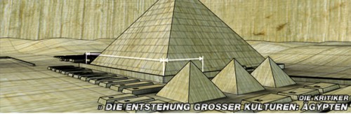 Begonnen wird mit dem Bau der ersten Stufenpyramide des Imhotep für den Pharao Djoser. Später in der Sendungen kommen die neuesten Erkenntnisse über den weltweit ersten Damm und Abu Simbel zum Einsatz. Damit beginnt die Erzählstruktur bei den Anfängen der großen ägyptischen Kultur und arbeitet sich am Zeitstrahl der Geschichte weiter fort.
