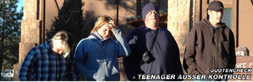 Durchschnittlich schalteten 4,10 Millionen Zuschauer die RTL-Realityshow «Teenager außer Kontrolle» an, die mit 12,5 Prozent Marktanteil bei den Zuschauern ab drei Jahren genau auf dem RTL-Schnitt liegt. Bei den 14- bis 49-Jährigen übertrifft die Sendung mit 20,8 Prozent deutlich den Schnitt von 15,7 Prozent.