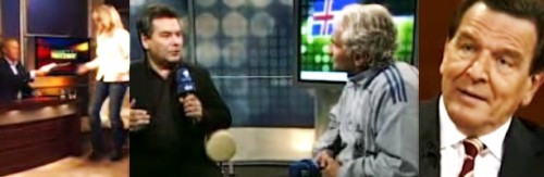 Ganz gewiss eine Szene, die lange noch in Erinnerung bleiben wird – ebenso wie der Auftritt von Gerhard Schröder nach der Bundestagswahl vor drei Jahren. In der Elefantenrunde wetterte er gegen Politiker-Kollegen und die anwesenden Journalisten. „Herr Bundeskanzler – und das sind Sie ja noch bis zur Neuwahl“, sagte ZDF-Chefredakteur Nikolaus Brender, woraufhin der damalige Kanzler entgegnete: „Das bleibe ich auch, auch wenn Sie dagegen arbeiten.“ Niemand, außer ihm, sei in der Lage, eine stabile Regierung zu stellen, so Schröder.