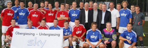 Bei wunderbarstem Fußballwetter – angezeigt waren kurz vor dem Anstoß noch laue 20 Grad in München-Giesing - fand am Mittwochabend nach der offiziellen Sky-Pressekonferenz, bei der der Pay-TV-Sender sein Konzept für die neue Bundesligasaison vorstellte, ein ganz besonderes Fußballspiel statt. Sky ließ Obergiesing gegen Untergiesing spielen – das viel zitierte Duell, das Franz Beckenbauer immer dann nennt, wenn er einen „Grottenkick“ sehen muss. Untergiesing rekrutierte sich aus Sky-Moderatoren und Kommentatoren, Obergiesing aus Journalisten, die von der Pressekonferenz berichteten.
