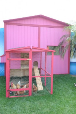 Der Hühnerstall im Garten - dort leben vier Hennen und ein Hahn.