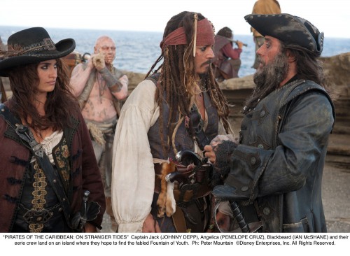 Barbossa macht sich derweil im Namen seiner Majestät auf den Weg zum Jungbrunnen, hinter dem, wie sich herausstellt, nicht nur die Briten und Spanier her sind. Auch der unbarmherzige Seeräuber Blackbeard (Ian McShane) ist auf der Suche nach der Quelle der Jugend. Mit seinem verzauberten Schiff, der Queen Anne’s Revenge, und seiner Zombie-Crew setzt er sämtliche Hebel in Bewegung, um mittels des Jungbrunnens den ihm prophezeiten, finsteren Schicksalslauf zu ändern. Hilfe erwartet er sich dabei von seinem gleichwohl feurigen, wie undurchsichtigen Maat Angelica (Penélope Cruz), die eine stürmische Vergangenheit mit Jack Sparrow hatte.
