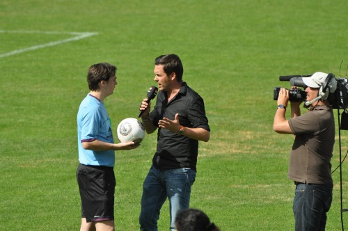 Matthias Killing im Gespräch mit Manuel Neuer-Bruder und Schiedsrichter Marcel.