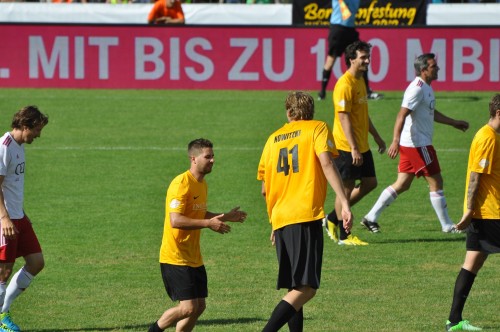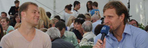Am Sonntagnachmittag trafen Deutschlands berühmtester Basketballexport Dirk Nowitzki und der in «Die Monster Uni» eine Synchronrolle übernehmende Torwartstar Manuel Neuer aufeinander, um mit einem Freundschaftskick für einen guten Zweck Geld zu sammeln. Ganz nebenher haben sie aber auch dem kleinen Privatsender kabel eins zu tollen Quoten verholfen: