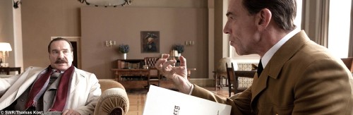 Im «George»-Epos darf Sohn Götz seinen Vater gleich selbst spielen. Ein Aspekt, bei dem einem zunächst etwas mulmig wird. Schließlich ist Heinrich George einer der kontroversesten Künstler des Dritten Reichs. Wenn man in Filmen wie «Jud Süß» auftritt, kann man nicht mehr unpolitisch sein. Dass man also den Sohn den umstrittenen Vater spielen lässt, lässt die Gefahr der fehlenden Distanz aufkommen.
