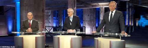 Vor der Bundestagswahl 2009 strahlte Das Erste den Dreikampf am Montagabend erst um 21:00 Uhr aus - ohne Nachbereitung durch Plasberg, allerdings über 75 statt 60 Minuten. Sehen wollten dies damals 4,20 Millionen Menschen, was 13,9 Prozent aller Fernsehenden waren. Bei den Jüngeren wurden 6,8 Prozent bei 0,89 Millionen verbucht.Mit weit über 17 Millionen Zuschauern war das große «TV-Duell» zwischen Angela Merkel und Peer Steinbrück eines der größten Fernsehevents dieses Jahres, wobei Das Erste mit 10,11 Millionen und 29,1 Prozent aller sowie 22,9 Prozent der jungen Zuschauer das mit Abstand größte Stück vom Kuchen ab bekam. Am Montagabend traten nun mit Rainer Brüderle (FDP), Jürgen Trittin (Die Grünen) und Gregor Gysi (Die Linke) die Spitzenkandidaten der drei kleineren im Bundestag vertretenen Fraktionen im Rahmen des