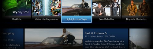 Schon im vergangenen Jahr angekündigt, jetzt umgesetzt: Der Pay-TV-Sender Sky bringt ab sofort den Service Sky Home an den Start. Sky Home ist der neue Startbildschirm, der jedes Mal beim Einschalten des Digital-Recievers erscheint. Er ist personalisiert und zeigt auf einen Blick die besten Programme des Tages und der Woche aller linearer Sky Sender und der On Demand Services Sky Anytime und Sky Select.
