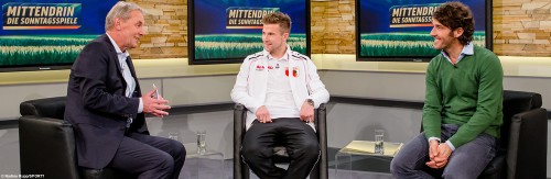 „Moderatoren sind Jörg Wontorra und Katja Wölffing. Neben den beiden Weltmeistern Karl-Heinz Riedle und Thomas Berthold, die sich als Experte im Studio abwechseln, begrüßen wir immer einen Gast zu einem der Sonntagsspiele – wie am Augsburgs Mittelfeldregisseur Daniel Baier. Wir analysieren das komplette Bundesligawochenende, gehen auf aktuelle Entwicklungen ein und blicken mit einem Topthema tiefgründig auf das Innenleben der Vereine. In «Bundesliga – Der Spieltag» gibt es direkt im Anschluss alle weiteren Tore und Highlights vom Bundesliga-Wochenende zu sehen“, sagt Stefan Thumm.