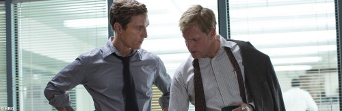 Neben den okkulten Elementen der Serie, lieferten die beiden Hauptdarsteller schon im Vorfeld reichlich Gesprächsstoff. Mit dem frischgebackenen Oscar-Preisträger Matthew McConaughey und dem zwei Mal Oscar-nominierten Woody Harrelson gaben sich zwei Schauspieler die Ehre, die beide in der Oberliga Hollywoods anzusiedeln sind und obendrein auch privat eine enge Freundschaft hegen. Die Folge waren intensive Interaktionen zwischen ihren Figuren Rust Cohle, gespielt von McConaughey, und dem von Harrelson verkörperten Martin Hart, welche durch ihre unterschiedlichen Wesen mehr als einmal aneckten. Angesichts der beiden Ausnahmeschauspieler war es nur logisch, dass sich «True Detective» insbesondere auf diese konzentrieren würde. Durch diese Vorgehensweise sah sich die HBO-Serie allerdings zugleich