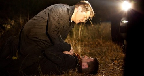 Showdown in der am Montag gesendeten 4500. Folge der Vorabend-Daily «Verbotene Liebe» im Ersten: Als Ansgar (Wolfram Grandezka, l.) Sebastian (Sebastian Schlemmer, r.) seinen ganzen Hass entgegenschleudert, entbrennt ein Kampf auf Leben und Tod.