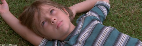 Allein schon durch ihre Produktionsgeschichte wohnt der Geschichte des jungen Mason aus Austin ein in dieser Form bislang einmaliger Kinoauber inne: Der kleine, schwelgerisch in den Himmel blickende Sechsjährige, auf den die Kamera zu Beginn hinabfährt, wird sich in den darauf folgenden mehr als zweieinhalb Filmstunden durch eine Vielzahl an Geschehnissen sukzessive in einen anderen Menschen verwandeln. Gleichwohl bleibt er auf gewisser Ebene bis zum Schluss ein und derselbe – immerhin schauen dem Publikum auch zum Schluss die ausdrucksstarken Augen Ellar Coltranes entgegen, der sich vom knuffigen Buben zum feschen College-Studenten entwickelte. Im Verlauf dieser Wandlung fängt Linklater ein, wie sich obendrein die entscheidenden Personen in Masons Leben (und ihre Darsteller) optisch verändern, sei es Masons Schwester Samantha (Linklaters Tochter Lorelei), seine Mutter Olivia (Patricia Arquette) oder sein Vater Mason Sr. (Ethan Hawke).