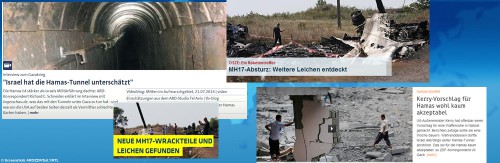 Neben den Berichterstattungen um die WM erforderten auch sehr viel ernstere Thematiken Sondersendungen. Dem mutmaßlichen Flugzeugabschuss der MH17 widmete die ARD am 17. und 18. Juli jeweils einen «Brennpunkt». Während zur besten Sendezeit donnerstags 4,85 Millionen Menschen einschalteten, informierte die Ausgabe am Tag danach noch 2,64 Millionen Menschen. Mit 21,8 Prozent aller Fernsehenden war die erste der beiden Sondersendungen außerordentlich beliebt, der Freitags-«Brennpunkt», welcher sich mit der „Suche nach Schuldigen“ beschäftigte, knüpfte mit 13,1 Prozent nicht an dieses Quotenniveau an. Doch dies war nicht der einzige «Brennpunkt», der die Zuschauer am Freitag, dem 18. Juli, erwartete. Auch über die „Eskalation in Nahost“ informierte Das Erste ab 20.30 Uhr. Mit 12,1 Prozent der Fernsehenden ab Drei lag die Sendung nur knapp über dem Senderschnitt des Ersten, der sich aktuell auf 11,9 Prozent beläuft.