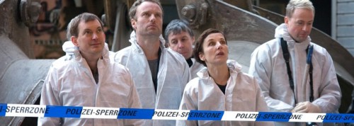 Auf der Indoor-Müllhalde wird die Leiche gefunden. Einige Spurensicherer, darunter (Daniel Krauss, li.) und die Hauptkommissare Nina Rubin (Meret Becker, vorne re.) und Robert Karow (Mark Waschke, 2. v. li.) sondieren die Lage.
