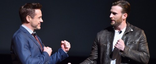 Zwei Teammitglieder, die sich nicht mehr grün sind: Im Oktober 2014 überraschten die Schauspieler Robert Downey Jr. und Chris Evans die anwesenden Fans bei einem Marvel-Event. Nach der Ankündigung von «Captain America: Civil War» stimmten sie die Anwesenden auf den Plot ein und übten sich auf der Bühne in einem Popularitätswettstreit.