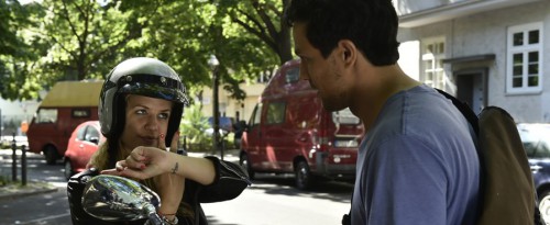 (K)ein Magic Moment. Alex (Christian Martin Schäfer, r.) ist Mila (Susan Sideropoulos) mit seinem Fahrrad in den Weg gekommen und Milas Kuchen liegt jetzt mitten auf der Straße. Alex will flirten, Mila quittiert dies mit erhobenem Stinkefinger. Der von den Machern kurz eingeblendete Regenbogen (und somit ein Hauch von Romantik) sind ganz schnell hinüber.