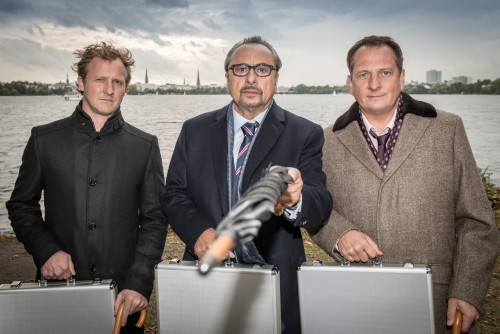 Analyst Keith Winter (Maximilian Brückner, l.), Manager Wilhelm Löhring (Wolfgang Stumph, Mitte) und Personaler Hubert Wienkamp (Thomas Kügel, r.) nutzen einen illegalen Freigang aus der Klinik, um sich Geld für ihren Börsengang zu besorgen - klingt vielleicht interessant, ist aber nicht herausragend.