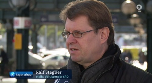 Weitere Themen am Sonntag waren Parlamentswahlen in Polen (auch hier wurde der Rechtsrutsch frühzeitig vorhergesagt) sowie die Wahlen in Argentinien. Auch ein Bericht von der Hogesa (Hooligans gegen Salafisten)-Demo fand seinen Platz – hier ließ die «Tagesschau» Teilnehmer der Kundgebung (zu?) ausführlich zu Wort kommen. Diesen Punkt hat man sich eventuell von der privaten Konkurrenz abgeschaut. Auch in der Montags-Ausgabe gab es eine solche MAZ, die quasi die Nähe zu den Betroffenen vermitteln sollte. Hier ging es dann um ein Projekt in Calw (Baden-Württemberg), in dem in einer Werkstatt Flüchtlinge für den deutschen Arbeitsmarkt fit gemacht werden sollen.