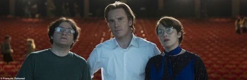 Der zweite Akt ist im traditionellen 35mm-Format gedreht, und kommt entsprechend graziös und cineastisch daher – gepaart mit dem Filminhalt (Jobs stellt 1989 die Demo seines Soloprojekts NeXT vor, das er nach seinem Apple-Rausschmiss anpackte) und den stilvoll-aggressiven Rottönen des Schauplatzes wird die Stimmung einer überlebensgroßen Rachestory geschaffen. Der letzte Akt ist dagegen mit einer Alexa-Digitalkamera gedreht, hievt «Steve Jobs» also ins Heute. Klare, gedämpfte Farben und facettenreiche Weiß-, Grau- sowie Blautöne unterstreichen, dass die Welt, wie Jobs sie sich vorgestellt hat, hereinbricht – und weil der heutige Kinogänger bestens an die Digitalästhetik gewöhnt ist, wird er auch nicht weiter unterschwellig vom Leinwandgeschehen distanziert. Da sich Jobs, dargeboten von einem atemberaubenden, mannigfaltigen Michael Fassbender, allmählich seiner Medienpersona annähert, wirkt der Wegfall dieser subtilen Hürde zwischen stilisierter Filmwelt und dem Publikum sogar doppelt intensiv.