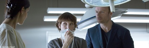Und so wird mit viel aufgesetztem Gegucke allerorten betont, dass Nina ihrem geheimniskrämerischen neuen Kollegen Karow nicht so ganz über den Weg traut. Und Karow wiederum hampelt sich durch gestelzt-süffisante Dialoge mit einer attraktiven, aber noch etwas unerfahrenen, deutlich jüngeren Kollegin, wenn er nicht bei der Gerichtsmedizinerin gönnerhaft-haarspalterisches Getue („Reine Spekulation“ – „Nein, begründete Vermutung“) von sich gibt.
