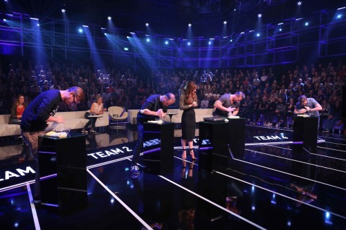 Einen wichtigen Pluspunkt kann man sich aber immerhin auch schon unabhängig von der künftigen Team-Zusammenstellung notieren: Die sehr gute Spielauswahl, die nicht nur mit einer gehörigen Portion Kreativität überzeugt, sondern deren Umsetzung auch durch die Bank weg gelingt und ähnlich aufwändig und liebevoll in Szene gesetzt wirkt wie bei Raabs Vorzeige-Format. Wirkt das Studio zwar relativ kalt und ungemütlich, sehen die Team-Sofas auch aus, als seien sie eben schnell noch aus der erstbesten Ikea-Filiale nach Köln Ossendorf gekarrt worden, so hat man sich sich bei der Spieleauswahl doch sehr ins Zeug geschmissen, unverbrauchte Ideen anzubieten. Gerade die Musikquiz-Spiele, bei denen die Promis anhand von Emoticons oder ihres eigenen Klavierspiels Songtitel erraten müssen, überzeugen auch mit Einfallsreichtum und Witz. Die Actionspiele fallen im Vergleich dazu aber keineswegs ab.
