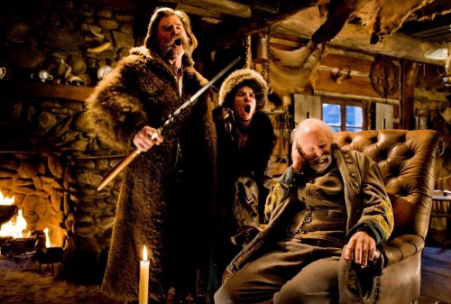 Ob in einer Kutsche im rustikalen Edel-Look oder später in Minnies Miederwarenladen: Sehr häufig nimmt die von Robert Richardson («JFK – Tatort Dallas») geführte Kamera nicht nur die gerade verbal ausschweifende Figur in den Fokus, sondern gleichzeitig noch einen oder gar mehrere Zuhörer. Dass sogleich mehrere der Darsteller in all der ihnen gebührenden Größe nebeneinander zu sehen sind, erlaubt es dem Zuschauer, nicht nur auf den Sprecher zu achten, sondern auch auf die Reaktionen, die er provoziert. Angesichts dessen, dass «The Hateful Eight» ein harsche Dramatik und bitterbösen Humor mischendes Kammerspiel über die Diskrepanz zwischen Selbstdarstellung und wahren Absichten und über korrumpierte Moralvorstellungen ist, erweist sich diese inszenatorische Ausrichtung als überaus ergiebig: Wie im Theater lassen sich gleichzeitig mehrere Performances bis ins kleinste Detail begutachten, was die Spannung ungemein erhöht – stets stellt sich die Frage: Wann entlädt sich die in dieser Gruppe anstauende Wut? Gerade aufgrund der Doppelbödigkeit der von Tarantino erdachten Persönlichkeiten lädt dies zudem zu wiederholten Sichtungen dieses Films ein, um beim ständigen Aktion-Reaktion-Wechselspiel nach Nuancen Ausschau zu halten, die einem zuvor entgangen sind.