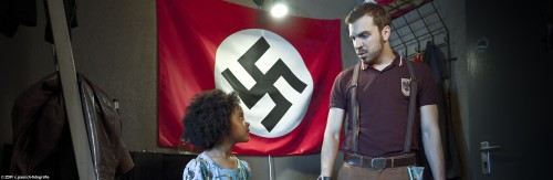 „Du bist ein scheiß Nazi“ wirft der eine Rechte dem anderen vor, wobei es von seiner Warte aus eben auch den „guten Nazi“ gäbe, anders als es die Formulierung „scheiß Nazi“ sonst meint. So in die Absurdität gedreht sorgt «Familie Braun» tatsächlich für Lacher, wenigstens aber für Schmunzeln. Auch solche Momente sind aber – ebenso wie die nachdenklichen Sequenzen – absolute Ausnahmen. Dazu gehören auch jene zwei Szenen, in denen die Nazis YouTube-Videos abdrehen, die qualitativ noch nicht einmal nach 2008 aussehen. Eher weniger unterhaltsam ist es, wenn sich Tochter Lara zu Karneval als Hitler verkleiden will. Der schockierte Rechtsradikale ist da schon vorprogrammiert. Das geht doch nicht, als Dunkelhäutige (Pardon, „Negermädchen“) Hitler sein zu wollen. Das verträgt sich ja nicht mit dem Rasseverständnis.