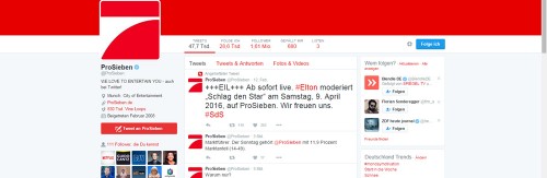 Twitter selbst übrigens schlitterte jüngst in eine Krise. Dort will man nun durch einen neuen Algorịthmus für Tweets, der personalisiert und nicht mehr nur Zeit-basiert ist (Vergleichbares macht auch Facebook) herauskommen. Einige User zeigten sich empört und erfanden den Hashtag #RIPTwitter. Dass sich etwas tun muss, zeigten aber die Mitte Februar 2016 veröffentlichten Quartalszahlen des Netzwerks. Erstmals seit dem Börsengang 2013 hat Twitter im vierten Quartal 2015 seine Nutzerzahlen nicht gesteigert. 305 Millionen Nutzer sind registriert, zwei Millionen weniger als im Quartal zuvor. Nimmt man einen SMS-Dienst hinzu, dann liegt die User-Zahl stabil bei rund 320 Millionen. Die Erlöse stiegen im vierten Quartal 2015 auf rund 710 Millionen US-Dollar, unter dem Strich blieb aber ein gewaltiger Verlust von 90 Millionen US-Dollar übrig. Die Twitter-Aktie hatte in den zurückliegenden zwölf Monaten rund zwei Drittel ihres Wertes verloren. Ausgehend von einem Startwert von 26 US-Dollar im Jahr 2013 hat sie nun noch einen Wert von rund 14 US-Dollar. Während die Marktanteile der großen Sender in den vergangenen Jahren und Monaten eher geschrumpft sind, legen die großen Player auf anderem Gebiet klar zu. So freut sich ProSieben beim Kurznachrichtendienst Twitter über rund 300.000 neue Follower seit Mitte 2015. Mit 1,6 Millionen so genannten „Verfolgern“ stellt der Münchner Sender, der sein Programm speziell auf 14- bis 39-Jährige ausrichtet, den mit Abstand erfolgreichsten TV-Account. Man liegt damit vor dem @ZDF, das seit Mitte 2015 rund 200.000 Follower gewonnen hat und nun bei rund 0,82 Millionen liegt. Etwas abgeschlagen dahinter, aber ebenfalls mit rund 50.000 Twitter-Fans mehr folgt RTL (derzeit knapp eine halbe Million Follower). Anders als bei Facebook kommt beim Dienst mit dem blauen Vögelchen die Möglichkeit zum tragen, sich recht unkompliziert und in Echtzeit über aktuelle Geschehnisse auszutauschen – und neben der aktuellen Nachrichtenlage sind das eben oftmals auch Events, die im Fernsehen stattfinden.