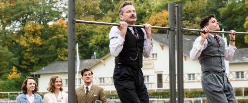 Sport gefällig? Das darf im RTL-Eventfilm «Duell der Brüder» natürlich nicht fehlen. Josef Waitzer (David C. Bunners), Adi Dassler (Ken Duken) trainieren die Muckies (vorne), während Friedl (Nadja Becker), Käthe (Picco von Groote) & Rudi Dassler (Torben Liebrecht) brav zuschauen.