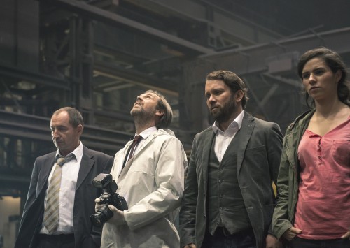 Kurt Stich (Thorsten Merten, v.l.n.r.) hat einen neuen Kollegen im Gepäck: Kriminaltechniker Johann Ganser (Matthias Matschke). Lessing (Christian Ulmen) und Kira Dorn (Nora Tschirner) sind darüber nicht wirklich erfreut. Um es frei nach Stich zu sagen: Ganser ist eine Arschkrampe, wie sie im Buche steht.