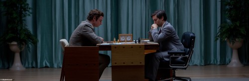Als größter Kontrahent Boris Spassky erweist sich Liev Schreiber («Spotlight») als fast hünenhafte Gestalt. Der in der Originalfassung perfektes Russisch sprechende Darsteller hat insgesamt wenig Text, vermag es aber trotzdem, eine einschüchternde Präsenz auszustrahlen. Dadurch wird sein Charakter symbolhaft wie der einer Lichtgestalt – unnahbar, unerreicht. Vermutlich entspricht genau das dem Empfinden Bobby Fischers, als jener 1972 zum Match gegen ihn antreten musste. Peter Sarsgaard («Night Moves») und Michael Stuhlbarg («Trumbo») bilden indes Fischers Entourage, die die Launen ihres Schützlings zu dulden und auszuhalten hat, aber auch zu jedem Zeitpunkt hinter ihm steht. Gleichsam erfüllen die beiden auch eine für das Publikum wichtige Funktion: Sie ordnen das Geschehen auf dem Schachbrett so für das Publikum ein, dass auch des Schachs nicht mächtige Zuschauer stets wissen, wie die Züge und Entscheidungen der Spieler zu bewerten sind. Komponist James Newton Howard («The Huntsman & The Ice Queen») und Kameramann Bradford Young («Selma») sorgen mit ihren stets subtil durchdachten Ton- und Bildkompositionen für ein durch und durch elegantes Erscheinungsbild, das von dunklen Bildern und unterschwelligen Klängen dominiert wird. Der Fokus bleibt stets auf Bobby Fischer – mit seiner Person ließen sich vermutlich noch Dutzende von Geschichten füllen.