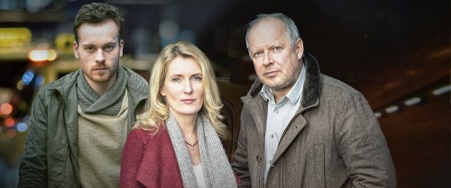 Fahrt ins Ungewisse: die Kommissare Lindholm (Maria Furtwängler, M.) und Borowski (Axel Milberg, r.) mit dem Entführer Rainald Klapproth (Florian Bartholomäi, l.).