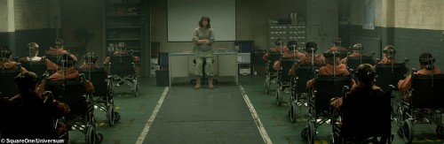 Wer sich von «The Girl With All the Gifts» eine weitere von vielen standardisierten Zombie-jagt-Mensch-Orgien erhofft, der läuft Gefahr, enttäuscht zu werden. Die fünf Millionen US-Dollar teure Produktion setzt zwar auch auf einige harte Gewaltspitzen (dass der Verleih für den Film ursprünglich eine FSK-Freigabe ab 12 vorgesehen hat, ist ein Witz, den auch die FSK selbst später als einen solchen enttarnt hat), in erster Linie lebt die Geschichte jedoch von ihrer beklemmenden Atmosphäre. Es dauert lange, bis die ohnehin angespannte Lage in der Forschungseinrichtung eskaliert. Zunächst darf das Publikum am Alltag der sogenannten Hungries teilhaben. Die irgendwo zwischen lebend, tot und untot gefangenen Kinder nehmen Schulunterricht wahr, müssen aber auch grauenvolle Experimente über sich ergehen lassen, die zunächst nur im Off stattfinden. Es ergibt sich ein subtiles Gefühl der Unsicherheit, denn auch, wenn wir alle zu glauben wissen, was genau hier unter der Leitung einer akkurat kaltherzig aufspielenden Glenn Close vonstatten geht, so müssen wir es erst mit eigenen Augen sehen, um es zu begreifen. Doch kaum wird aus den Vorahnungen Gewissheit, wendet sich das Blatt und durch «The Girl With All the Gifts» fährt ein gewaltiger Ruck, mit dem nicht bloß die erste von mehreren, gefühlt mit Blockbusterbudget inszenierten Actioneinlagen, sondern auch ein spürbarer Anstieg des Tempos einhergehen.