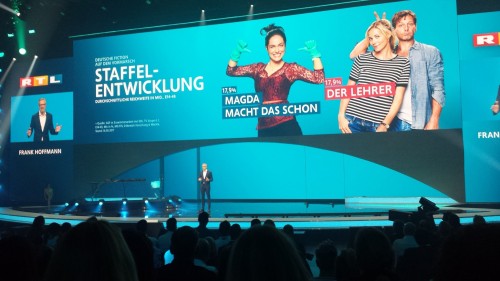 Dass RTL sein Fiction-Portfolio verstärkt selber in die Hand nehmen will, ist bereits länger bekannt. Auf der Programmpräsentation räumte der Kölner Marktführer seinen selbst produzierten Serien trotzdem ordentlich Zeit ein. Unter anderem präsentierte der Marktführer einen ausführlichen Trailer, in dem er die geplanten Serien-Neustarts allesamt kurz zusammenfasste. Verena Altenberger (spielt Magda in «Magda macht das schon!») unterstütze RTL-Chef Frank Hoffmann bei der Präsentation der Serienoffensive. Anke Schäferkordt wurde unterdessen in einem mehrteiligen Einspielfilm von Sendergesicht Daniel Hartwich ins Studio gefahren. Hartwich wiederum gab sich gewohnt ironisch und witzelte, dass er bei RTL für alles eingesetzt werde.